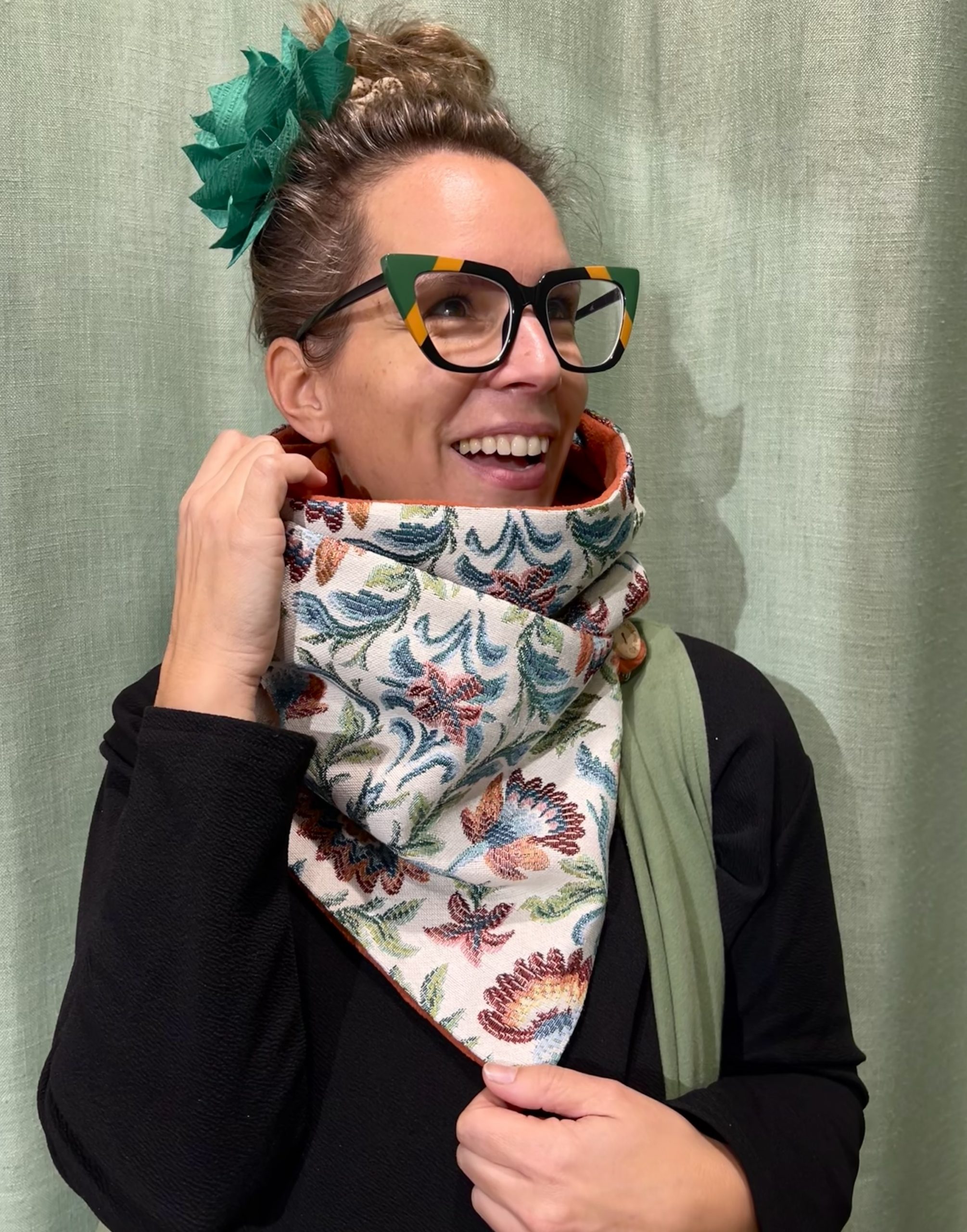 Discover the Buff Botón, a unique scarf handcrafted in Barcelona with high-quality upholstery fabric and exclusive prints that elevate any winter look. Its robust and elegant exterior pairs perfectly with a soft fleece interior, designed to keep you warm during the cold seasons and provide a cozy feeling at all times.